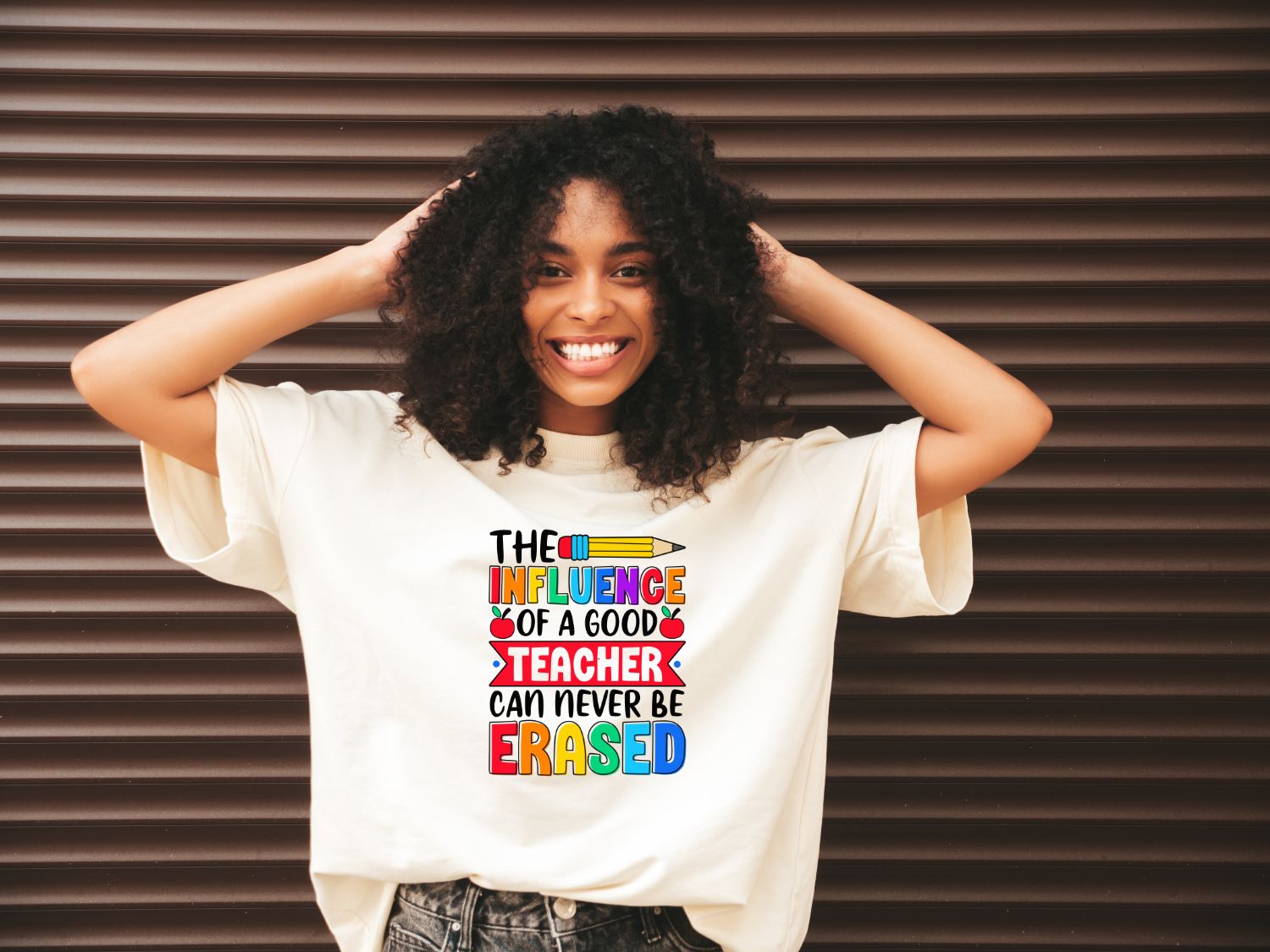 The Influence of a GOOD Teacher Can Never Be Erased. (Looks great on any light-colored shirt).
